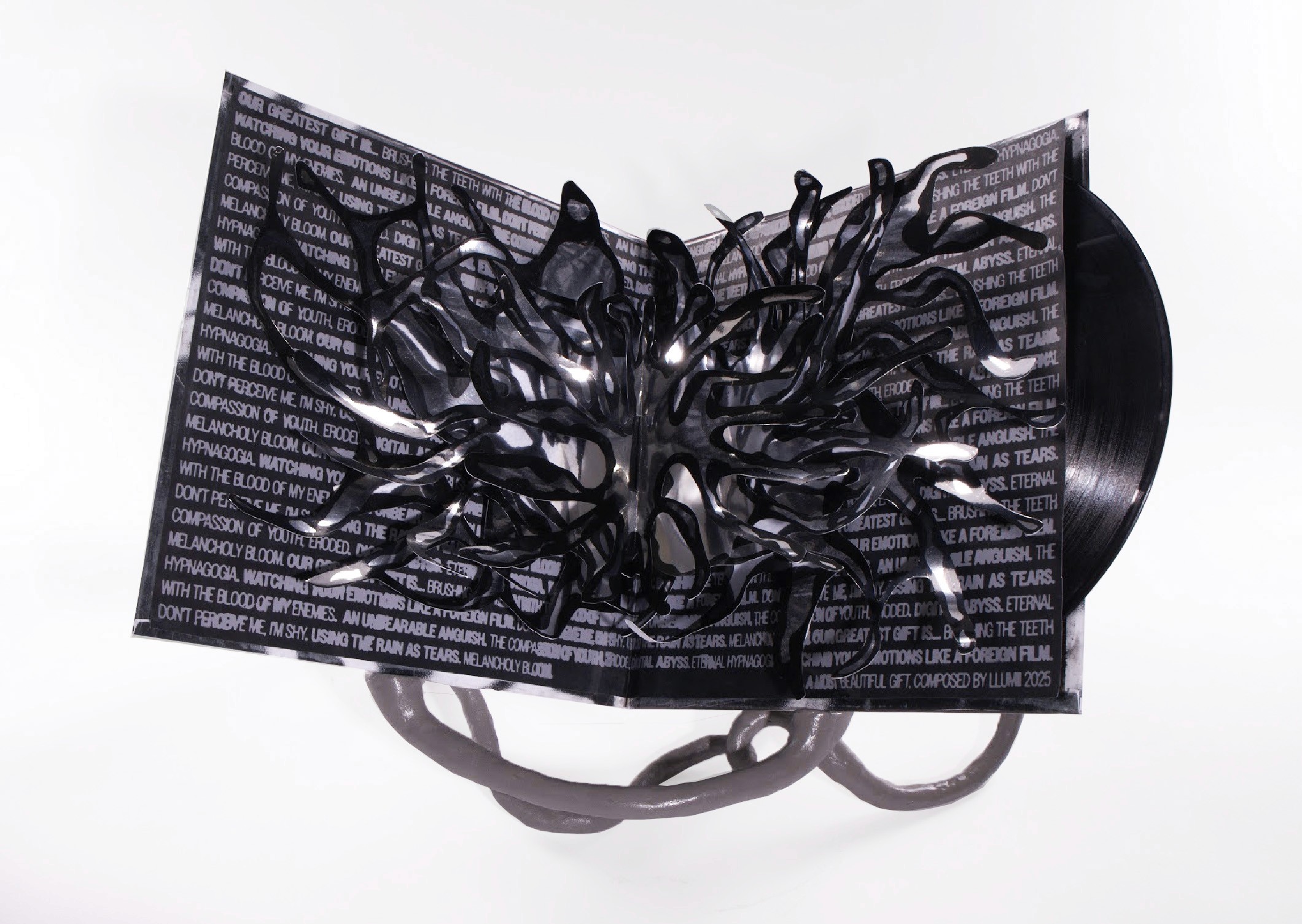 3D Stand: The purpose of the stand is to help present the vinyl as a “work of art.” How can the 2d aspects share a relationship to 3d aspects? Similar attributions in terms of visuals are going to be shared through both the vinyl & the stand.